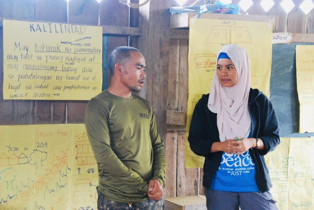 A member of the Moro Islamic Liberation Front (MILF) shares his dreams for the peace and development in his community while Sihaya listens attentively.