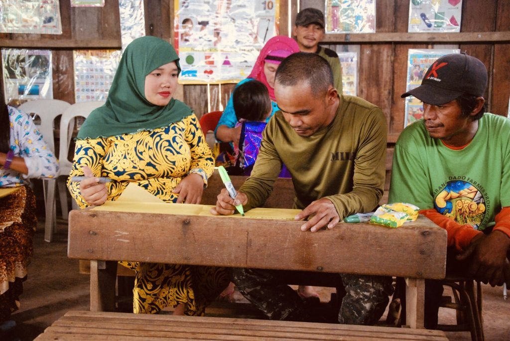 A Bangsamoro woman watches her husband express his dream to enhance his coffee farming methods.