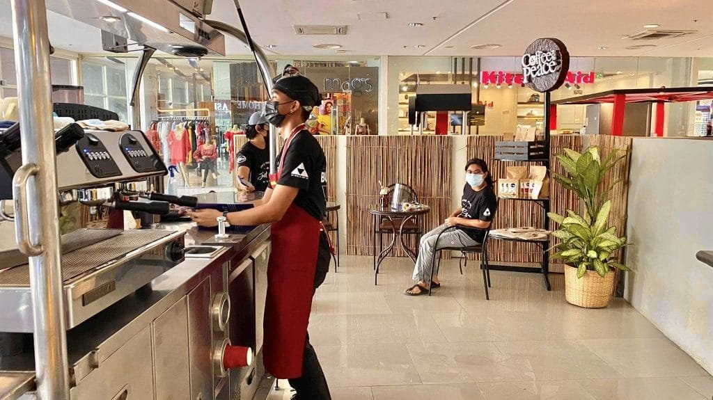 I heard that the Ayala Corporation is supporting social enterprises by offering free space in their chain of malls throughout the country. Last 19 April 2021, I got a call from one of their representatives inquiring if I was interested in opening a 26-square-meter shop at the Ayala Abreeza Mall in Davao City as part of their Alagang Ayala Land Program. My first reaction was to pray. Then I established my objectives in light of the vision and mission of Coffee for Peace. I presented the plan to our community and to the management team of CFP. Our team recruited new interns and prepared them for this opportunity. Last 16 September 2021, we opened the Coffee for Peace Kiosk at Abreeza.