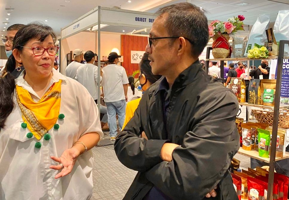 Mount Apo meets Kalinga. During the second day of Philippine Coffee Expo 2022, Datu Romeo Andot and Bai Gemma Andot, from the Obo Manobo Indigenous People at Mt Apo, met Jeffrey Pasikan from the Kalinga Indigenous People, Cordillera Region.