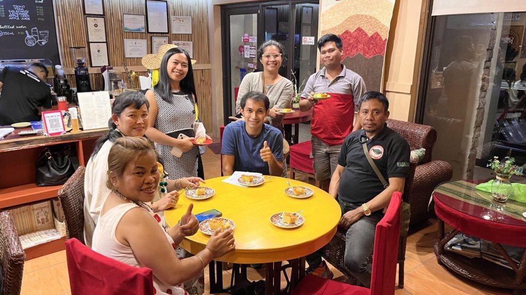 Obo Manobo Representatives visit Coffee for Peace Cafe. It is our joy and honor to host Datu Romeo Andot, Bai Gemma Andot, Alvin Marchan, and Don Tormis at our Coffee For Peace Café at One Oasis Davao. We missed Rich Paul Calcetas Cosio who had to rush back to Kidapawan City for his Law studies and class session. After our two days welcoming participants together in our Obo Manobo Coffee Farmers’ booth at the Philippine Coffee Expo 2022, we treated ourselves to a mini party at our coffee shop.