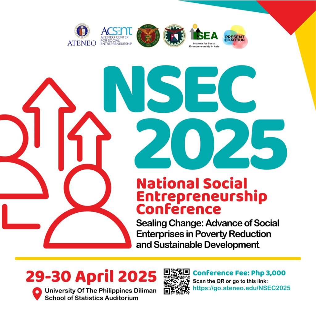 The National Social Entrepreneurship Conference (NSEC) 2025, held on 29-30 April 2025 at the University of the Philippines in Diliman, was a transformative gathering of over 500 changemakers—social entrepreneurs, government leaders, academics, grassroots advocates, and impact investors—committed to building a more just, inclusive, and sustainable future through social enterprise. It was spearheaded by four remarkable institutions—the Ateneo Center for Social Entrepreneurship (ACSEnt), the Institute for Social Entrepreneurship in Asia (ISEA), the University of the Philippines Institute for Small Scale Industries (UP ISSI), and the Poverty Reduction through Social Entrepreneurship (PReSEnt) Coalition. The conference highlighted both the urgency of our nation’s social and ecological challenges and the powerful role that over 164,000 social enterprises across the country are playing in response. With its theme, “Scaling Change: Advances of Social Enterprises in Poverty Reduction and Sustainable Development,” the event served not only as a platform for sharing solutions and innovations, but also as a celebration of resilience, collaboration, and our shared responsibility to center people, planet, and purpose in economic life.