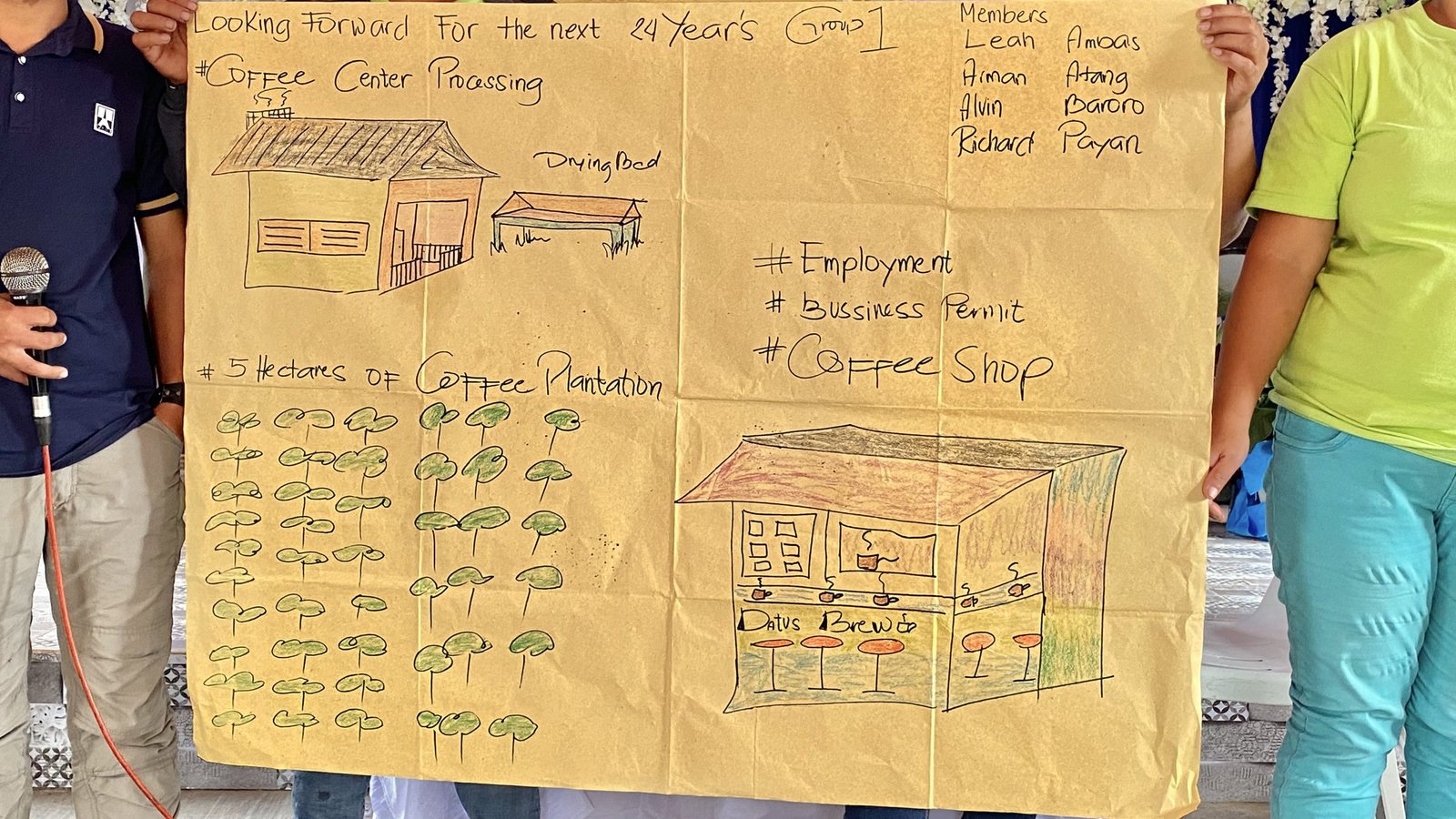 28-30 June 2022. The Inclusive Development Team of PeaceBuilders Community, Inc. and Coffee for Peace (PBCI-CFP IncluDev Team) conducted a series of small group consultations and workshop-seminars with our partners from the Ovu Menovu Indigenous People’s community and from the Corporate Social Responsibility Department of the Energy Development Corporation (CSR-EDC). These field activities are a part of a five-year Social Entrepreneurial Training Program among pre-qualified Ovu Menovu farmers.